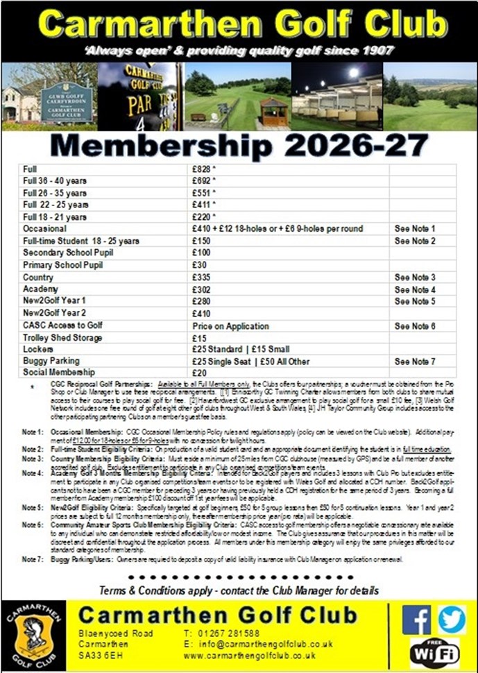 Before looking at our membership packages, why not take a look at our video "A day in the life of a member at Carmarthen Golf Club"?